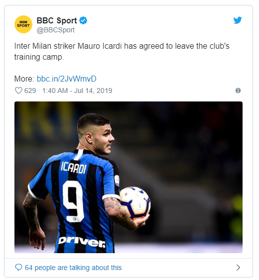เดินทางมาร่วมโม่แข้งในโปรแกรมแข่งขันเตรียมความพร้อมช่วงปรีซีซันใน เอเชีย กับทีมแต่อย่างใดจากการยืนยันของต้นสังกัดท่ามกลางประเด็นใน ตลาดซื้อขายนักเตะ หนาหูกับ ยูเวนตุส ในซัมเมอร์นี้ โดยสถานการณ์ของหัวหอกวัย 26 ปีกับทัพ เนรัซซูรี ตึงเครียดมาตั้งแต่เดือนกุมภาพันธ์ที่ผ่านมาเมื่อเจ้าตัวถูกริบปลอกแขนกัปตันทีมจากสังกัด ขณะที่ อันโตนิโอ คอนเต้ กุนซือคนใหม่ของทีมก็แสดงท่าทีชัดเจนว่าไม่มี อิคาร์ดี้ อยู่ในแผนการทำทีมสู้ศึกฤดูกาล 2019/20 แต่อย่างใด อินเตอร์ ทวีตผ่านแอคเคาท์ทวิตเตอร์อย่างเป็นทางการของพวกเขาเมื่อวันเสาร์ที่ผ่านมาว่า เมาโร อิคาร์ดี้ จะกลับมา มิลาน ร่วมฝึกซ้อมในแคมป์ที่ ลูกาโน จากการตกลงของทั้งสองฝ่าย และ อิคาร์ดี้ จะยังคงฝึกซ้อมในอีก 2-3 วันข้างหน้าในช่วงปรีซีซันแต่เขาจะไม่มีส่วนร่วมกับทีมในการทัวร์ เอเชีย แต่อย่างใด โดย อินเตอร์ มิลาน มีคิวประเดิมการแข่งขันปรีซีซันใน เอเชีย นัดแรกกับ แมนเชสเตอร์ ยูไนเต็ด ในวันที่ 20 กรกฎาคมนี้ที่ประเทศ สิงคโปร์ ต่อด้วยการดวลกับ ยูเวนตุส และ ปารีส แซงต์-แชร์กแมง ในวันที่ 24 กับ 27 กรกฎาคมตามลำดับ