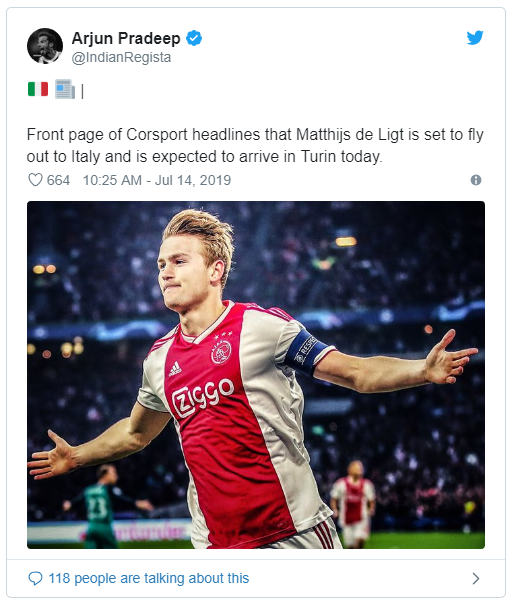สโมสรฟุตบอลอาหยักซ์ แห่งศึก เอเรดิวิซี เนเธอร์แลนด์ แถลงการณ์ว่าพวกเขาจะไม่หนีบเอา มาต์ไตส์ เดอ ลิกท์