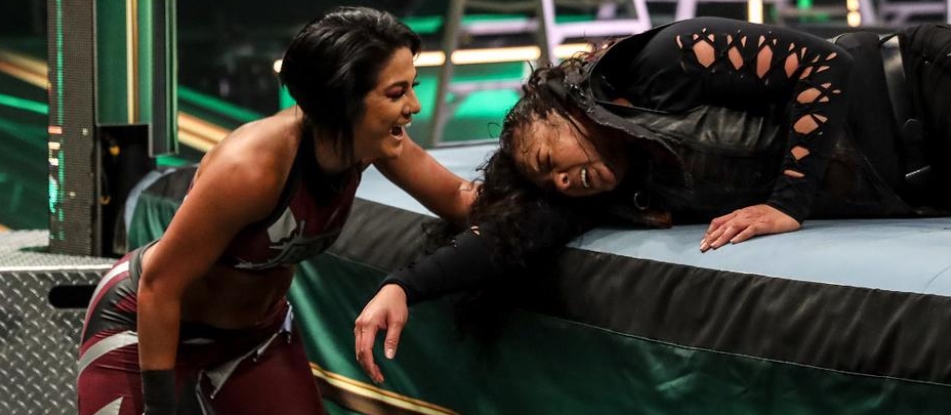 ความองอาจของ Bayley กลับมาในภายหลัง สาดน้ำ Tamina ของเธอในหน้าพร้อมกับขวดน้ำดูเหมือนจะปลุกความก้าวร้าวภายในผู้ท้าชิงซึ่งปล่อย Bayley บนโต๊ะพูด